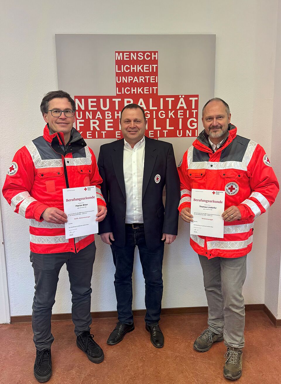 Der Kreisvorsitzende des Bayerischen Roten Kreuzes, Holger Merz, hat den BRK-Kreisgeschäftsführer Thomas Lindörfer offiziell zum Krisenmanager des Kreisverbandes Schweinfurt berufen. Unterstützt wird er dabei von Florian Biber, Leiter Rettungsdienst, der zum stellvertretenden Krisenmanager ernannt wurde. Beide übernehmen damit zentrale Führungsrollen zur organisatorischen und strategischen Bewältigung besonderer Lagen.