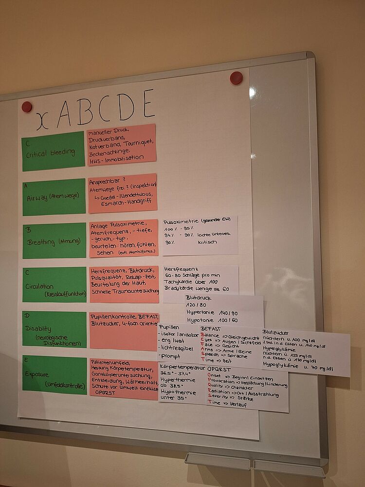 Wir widmeten unseren Ausbildungsabend dem xABCDE-Schema, ein zentrales Instrument der strukturierten Notfallversorgung - von starken Blutungen (x) über Atemweg- und Atemkontrolle (A/B) bis hin zu Kreislauf, Neurologie und Schutz vor Unterkühlung (C/D/E).