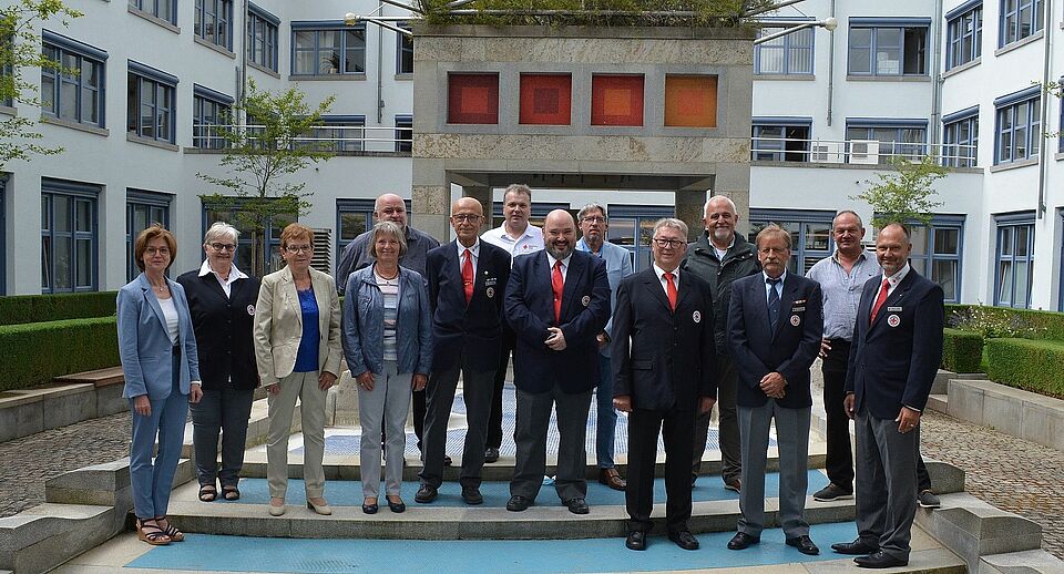 Im Bild (von links): Stellvertretende Landrätin Bettina Bärmann, Kreisverbandsvorsitzende Helga Fleischer, Waltraud Geiling, Renate Englert, Jürgen Lindemann, Werner Moll, Roland Moller, Christian Kamm, Oliver Kelly, Ingbert Hußlein, Klemens Großkopf-Klopf, Bernd Nägele, Stefan Müller sowie Kreisgeschäftsführer Thomas Lindörfer Foto: Landratsamt Schweinfurt/Gößmann