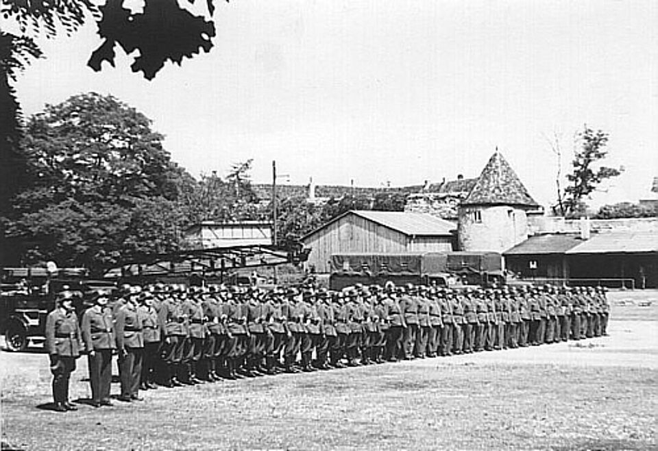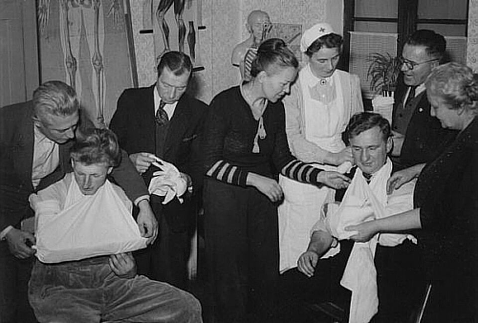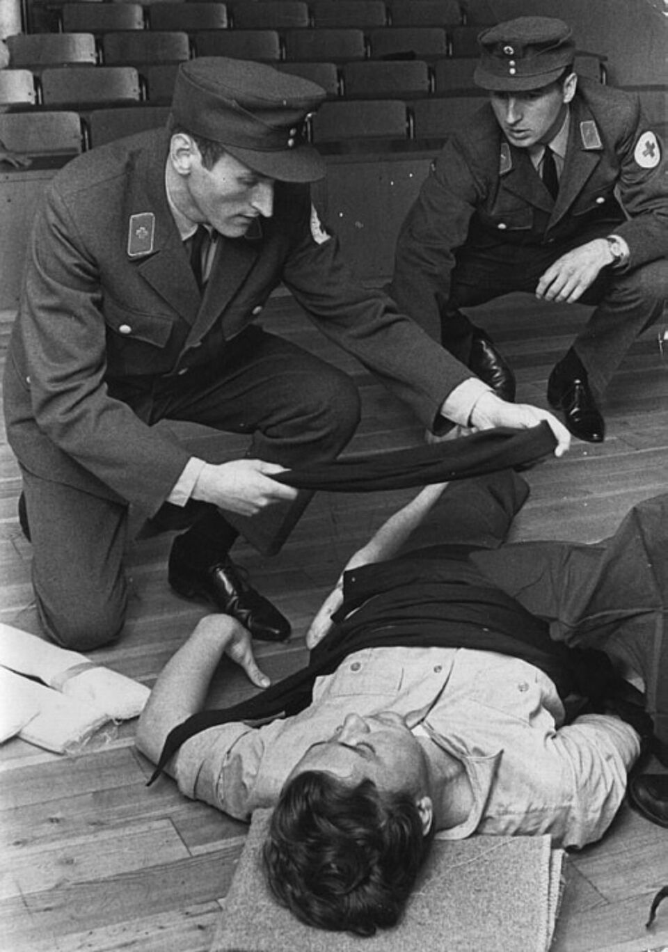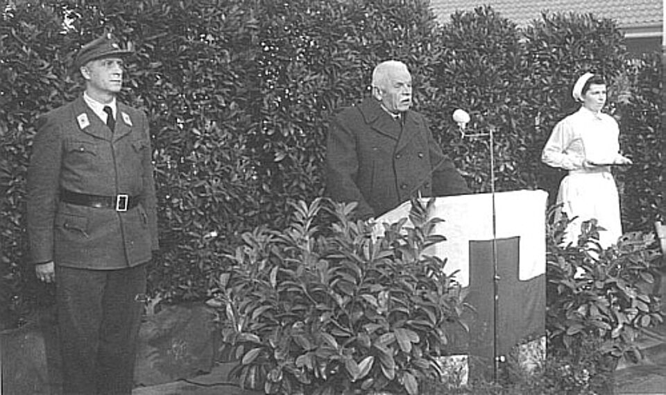 1962 wurde das Tragen der Rotkreuz-Armbinde durch aufgenähte Armscheiben ersetzt.