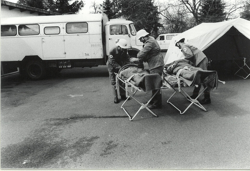 Für den Krankentransport standen ab dem Jahre 1959 Krankenwagen mit UKW-Sprechfunk zur Verfügung. Aus dem einst gelegentlichen Einsatz hat sich ein Tag- und Nachtdienst herausgebildet, der über viele Jahre hinweg von 6 hauptamtlichen und etwa 30 ehrenamtlichen Sanitätern versehen wurde.
