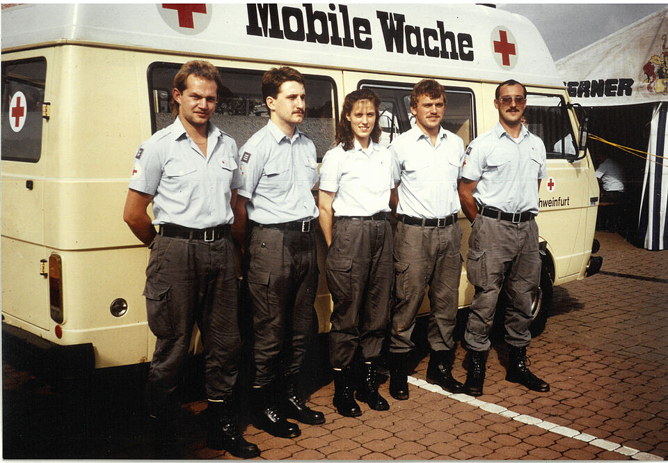 1979 beging die Sanitätskolonne Schweinfurt ihr 90-jähriges Gründungsfest. Als Geschenk erhielt die Sanitätskolonne Schweinfurt von der Städtischen Sparkasse ein Fahrzeug, das in Eigenarbeit zur Mobilen Wache für Sanitätseinsätze ausgebaut wurde. Die Stadtwerke Schweinfurt spendeten vier Handfunkgeräte.