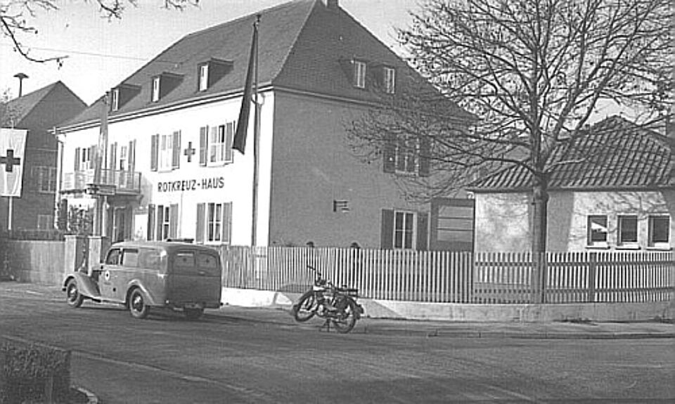Markstein in der Entwicklung des Schweinfurter Roten Kreuzes war die Übergabe des Rotkreuz-Hauses an den Kreisverband durch den damaligen Präsidenten des BRK, Herrn Dr. Otto Geßler, am 6. Dezember 1953. Das einstige Grundstück in der Landwehrstraße konnte für den Neubau nicht verwendet werden, weil die Baulinienfestsetzung ein mindestens dreistöckiges Gebäude vorsah. Zu dieser Bauleistung sah sich der Kreisverband außerstande und so entschloss sich die Vorstandschaft, das Baugelände zu verkaufen. Mit dem Erlös erwarb man ein Gebäude in der Gorch-Fock-Str. 15, das teilweise zerstört war. Das Haus wurde für die Bedürfnisse des Kreisverbandes umgebaut und beherbergt die Geschäftsstelle und die "Krankentransportwache".