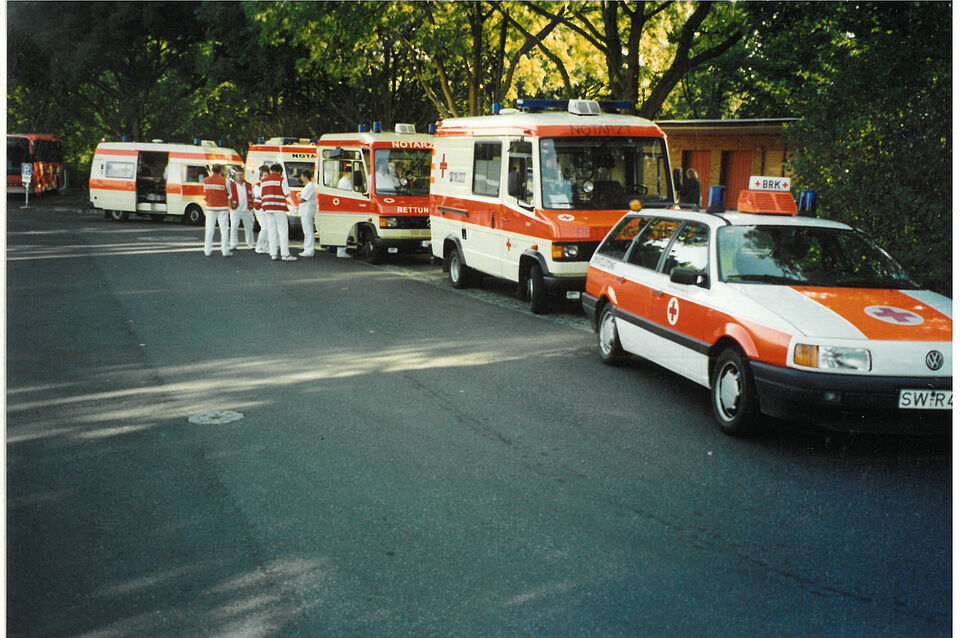 Im Jahre 1968 verfügte der BRK-Kreisverband über fünf VW-Transporter und einen Mercedes-Benz-Krankenwagen. Nur 6 Sanitäter waren hauptamtlich angestellt, die wie folgt eingeteilt wurden: