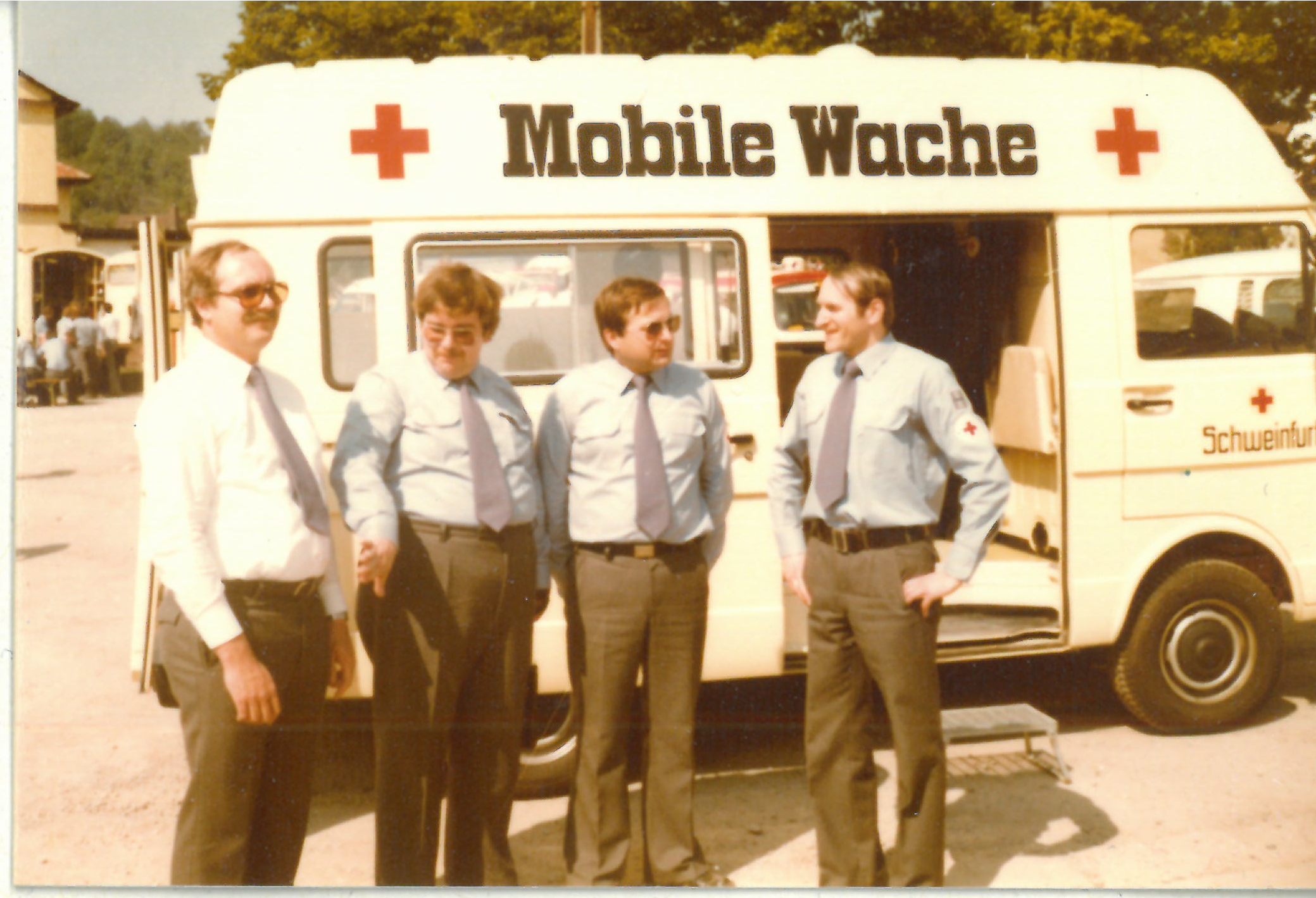 1979 beging die Sanitätskolonne Schweinfurt ihr 90-jähriges Gründungsfest. Als Geschenk erhielt die Sanitätskolonne Schweinfurt von der Städtischen Sparkasse ein Fahrzeug, das in Eigenarbeit zur Mobilen Wache für Sanitätseinsätze ausgebaut wurde. Die Stadtwerke Schweinfurt spendeten vier Handfunkgeräte.